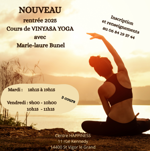 Les cours débuterons courant septembre au centre HAPINESS à St Vigor le Grand. Il est possible de vous préinscrire et demander tout renseignement auprès de moi au 06 84 19 37 44